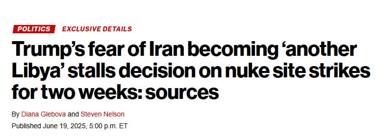 Президент США Дональд Трамп медлит с принятием решения о вступлении в израильско-иранскую войну, потому что боится, что Иран станет "еще одной Ливией".