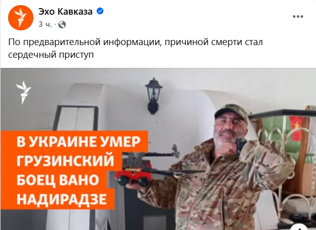 В Украине скончался грузинский доброволец Вано Надирадзе - командир грузинской группы в составе Сил специальных операций ВСУ.