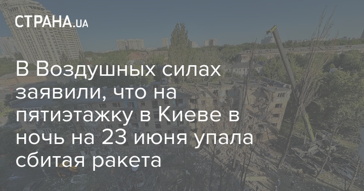 В Воздушных силах заявили, что на пятиэтажку в Киеве в ночь на 23 июня упала сбитая ракета