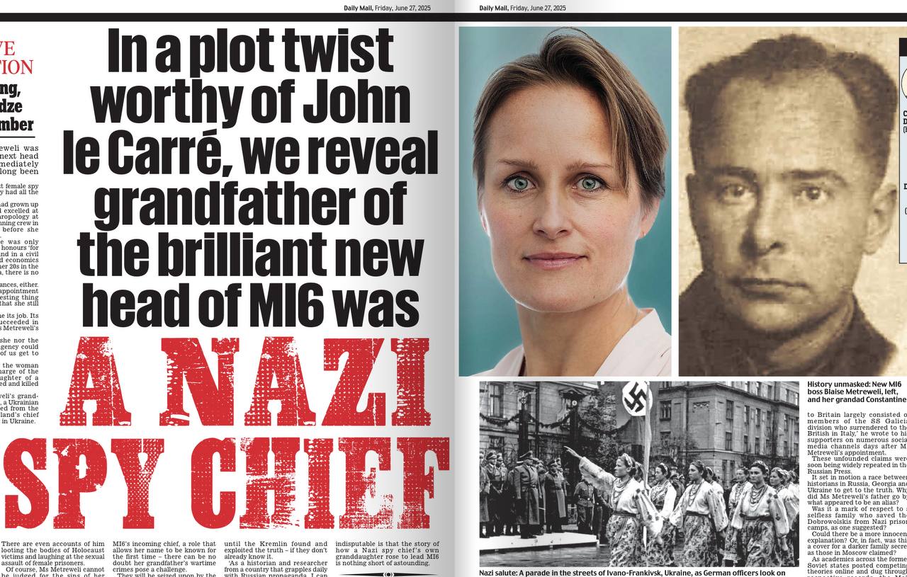 Дед новой руководительницы МИ-6 Блейз Метревели был уроженцем Украины и пособником нацистов во время Второй мировой.