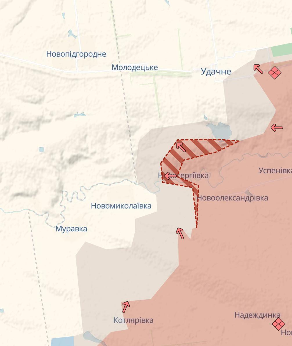В Новосергеевке РФ также продвинулась, а серая зона подошла вплотную к границе Днепропетровской области.