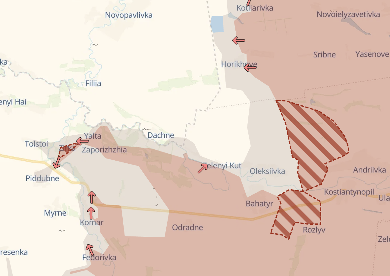 Армия РФ снова продвинулась в Каменском под Запорожьем, сообщает Deep State.