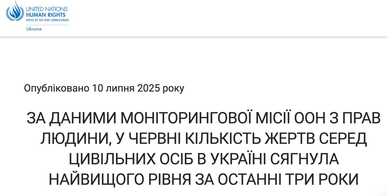 "Гражданское население по всей Украине сталкивается с такими страданиями, которых мы не видели уже более трех лет", – заявила глава мониторинговой миссии ООН Даниэль Белль. - "Увеличение количества ракетных ударов дальнего радиуса действия и атак беспилотников принесло еще больше смертей и ущерба гражданскому населению в отдаленных от линии фронта районах".