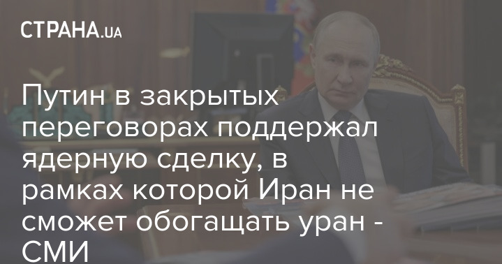 Путин в закрытых переговорах поддержал ядерную сделку, в рамках которой Иран не сможет обогащать уран - СМИ