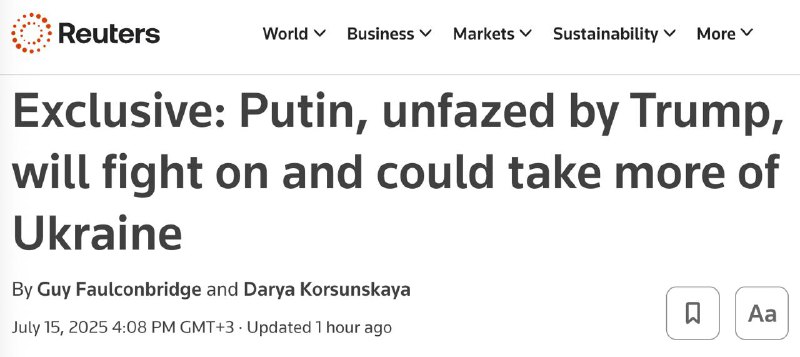 Путин будет продолжать войну и проигнорирует ультиматум Трампа - Reuters