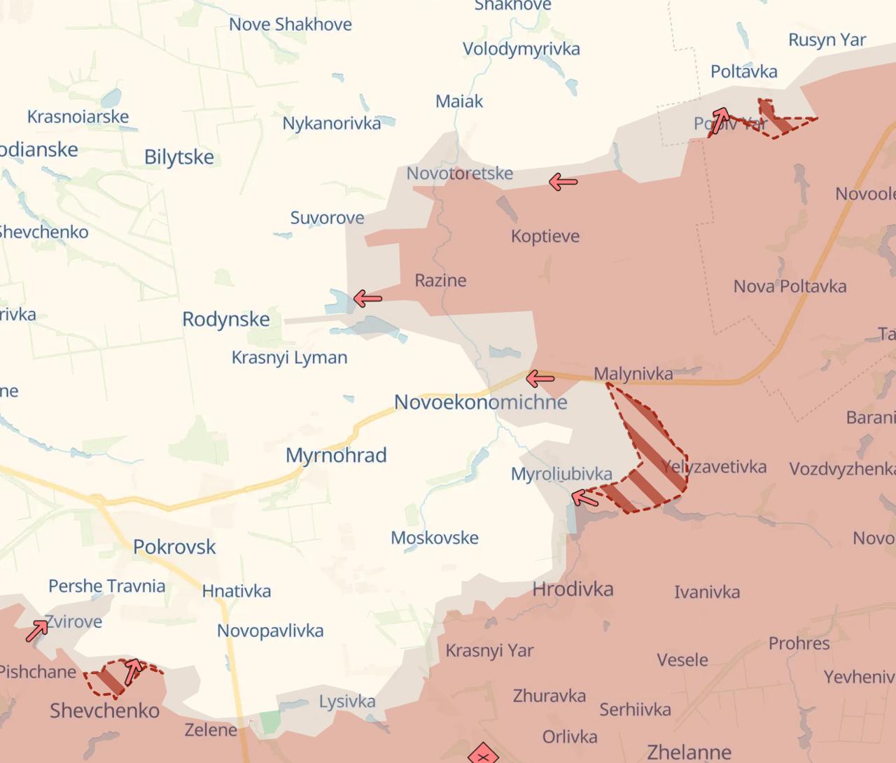 К югу от Покровска было продвижение в районе Шевченко, а со стороны Зверево "серая зона" подошла к городской черте.