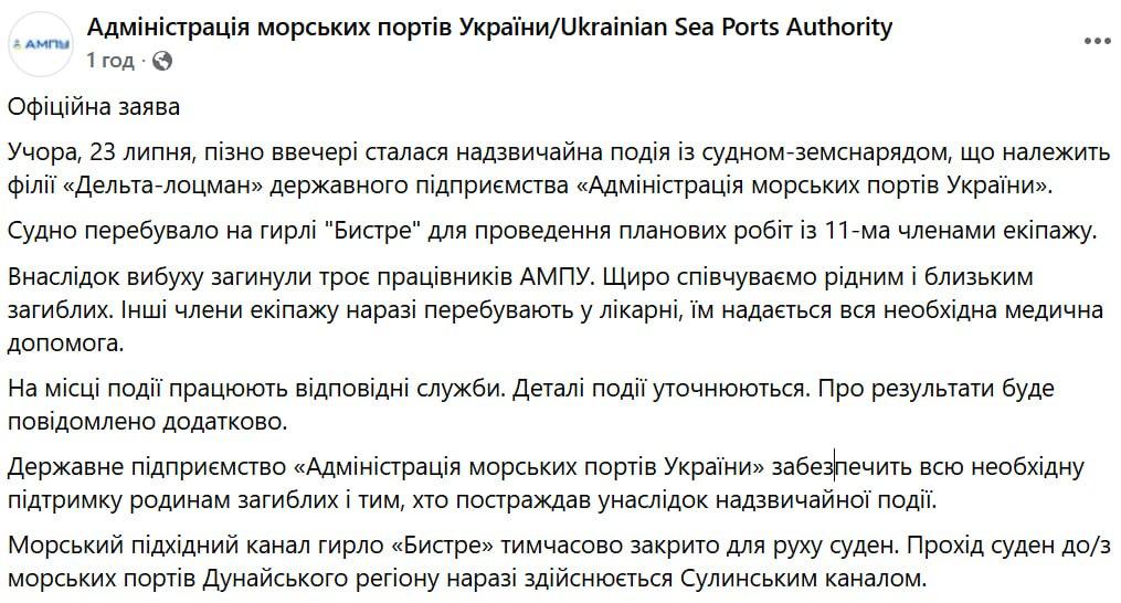 11:06 В Вилково Одесской области на мине подорвалось гражданское судно, погибли двое мужчин и женщина, сообщают местные паблики.