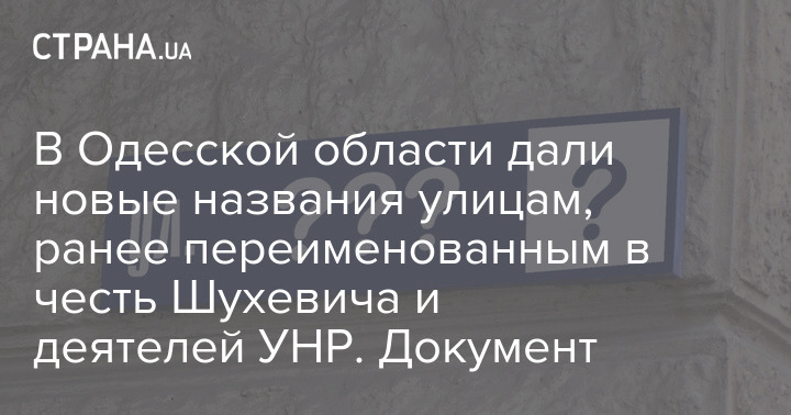 В Одесской области дали новые названия улицам, ранее переименованным в честь Шухевича и деятелей УНР. Документ