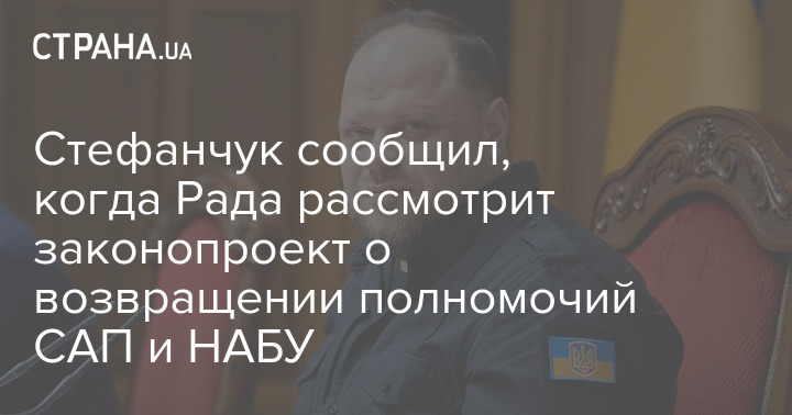 Верховная Рады рассмотрит законопроект о возвращении полномочий САП и НАБУ через неделю, 31 июля. Об этом сообщил спикер Руслан Стефанчук.