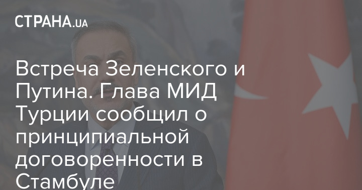 Глава Министерства иностранных дел (МИД) Турции Хакан Фидан заявил, что есть принципиальная договоренность о встрече лидеров России и Украины