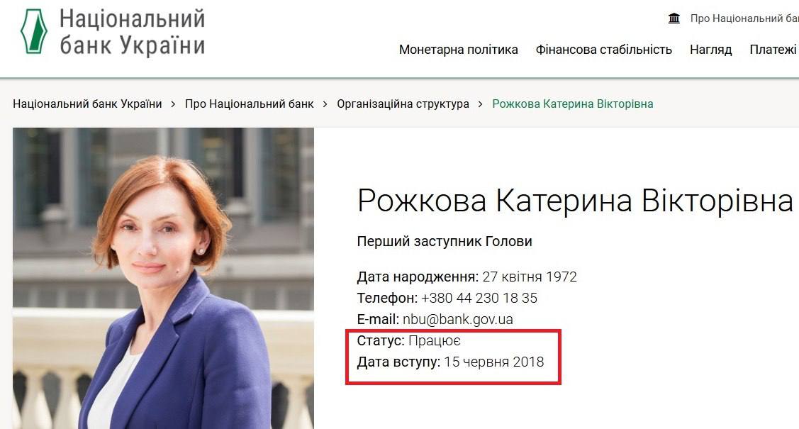 На этой или следующей неделе могут официально уволить первого заместителя председателя Национального банка Украины Катерину Рожкову.
