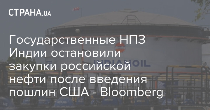 Индийские государственные нефтеперерабатывающие заводы (НПЗ) приостановили закупки российской нефти после того, как США ввели 25% тарифы на импорт из Индии.