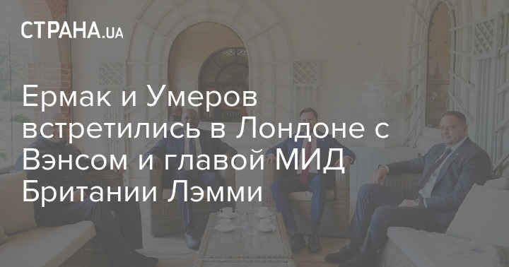Глава Офиса президента Андрей Ермак и секретарь СНБО Рустем Умеров встретились в Лондоне с вице-президентом США Джей Ди Вэнсом и главой МИД Британии Дэвидом Лэмми.