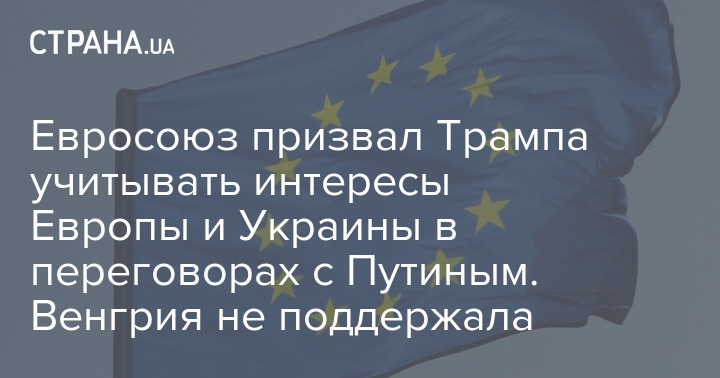Евросоюз опубликовал заявление с призывом к президенту США Дональду Трампу учитывать интересы Европы и Украины в переговорах с российским лидером Владимиром Путиным.