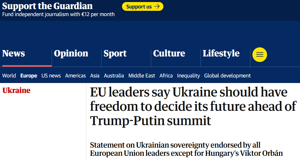 В заявлении, которое не поддержала Венгрия, говорится, что народ Украины должен иметь право самостоятельно определять своё будущее, а дипломатическое решение войны должно защищать украинские и европейские интересы.