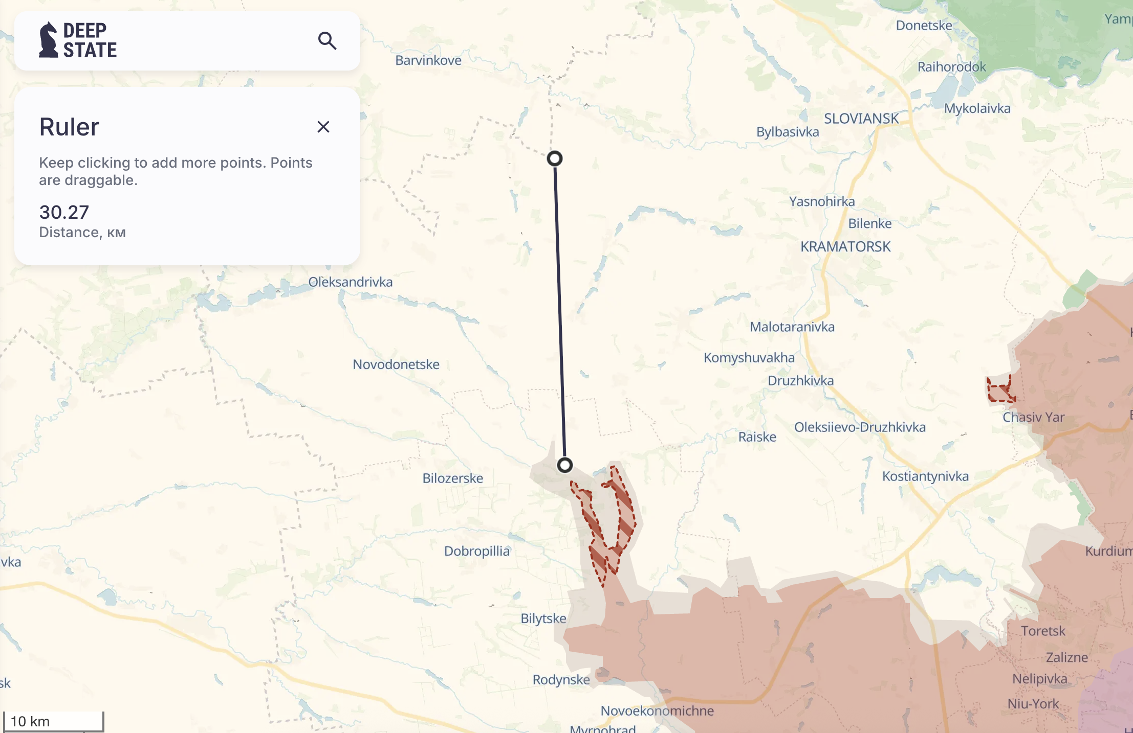 Российские паблики утверждают, что такой прорыв уже происходит, и что войска РФ, наступая со стороны Родинского, дошли до Гришино к северо-западу от Покровска - что означало бы почти полное окружение города. Но Украина прорыва к Гришино не подтверждала. На карте DeepState этот населенный пункт находится в тылу ВСУ.