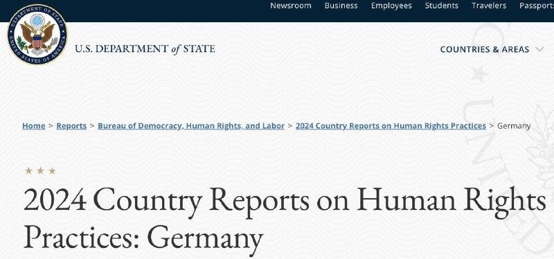 Государственный департамент США в своем ежегодном отчете подверг резкой критике ситуацию с правами человека в Германии. Как сказано в документе, в стране ограничивают свободу мнений и наблюдается рост антисемитизма, связанный с миграционными процессами.