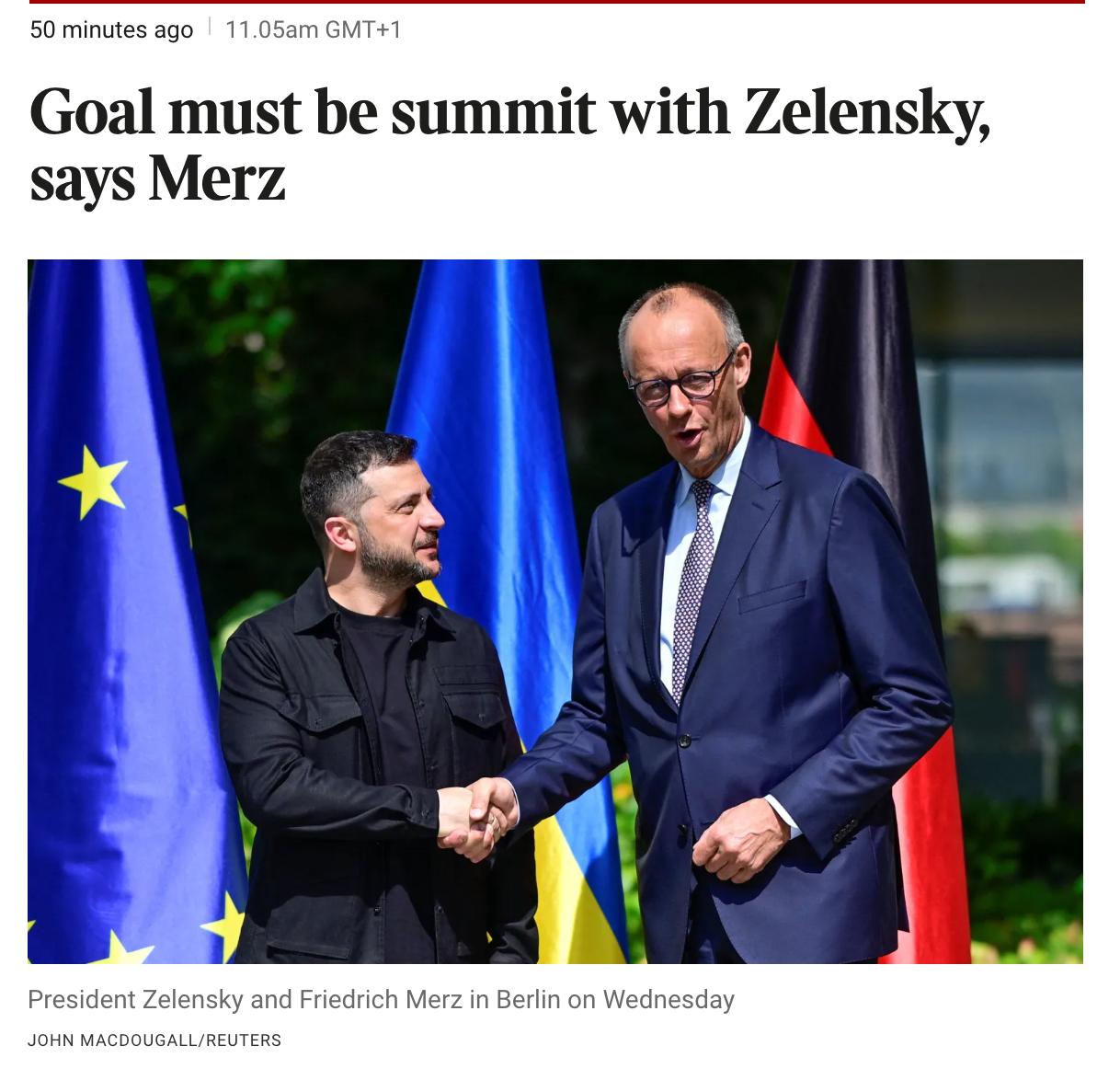 "Целью должен быть саммит, в котором также будет участвовать президент Зеленский. На нём должно быть достигнуто соглашение о прекращении огня. Украине нужны надёжные гарантии безопасности. Территориальные вопросы могут быть решены только с согласия украинцев. Мы чётко и единогласно донесли эти сигналы президенту Трампу по пути в Анкоридж. Я нахожусь с ним в постоянном контакте по этому вопросу", - сказал канцлер Германии.