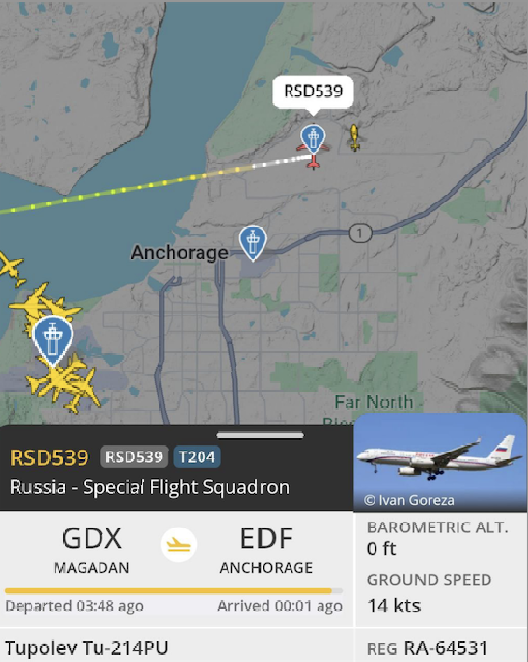 20:20 Самолёт Путина заходит на посадку в Анкоридже на Аляске.