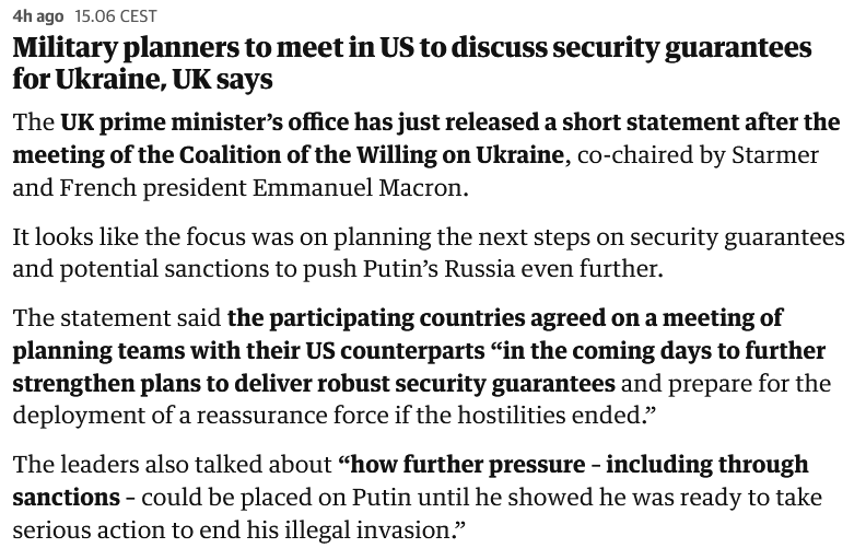 Напомним, на днях "коалиция желающих" по итогам заседания заявила о готовности ввести войска в Украину после прекращения огня.