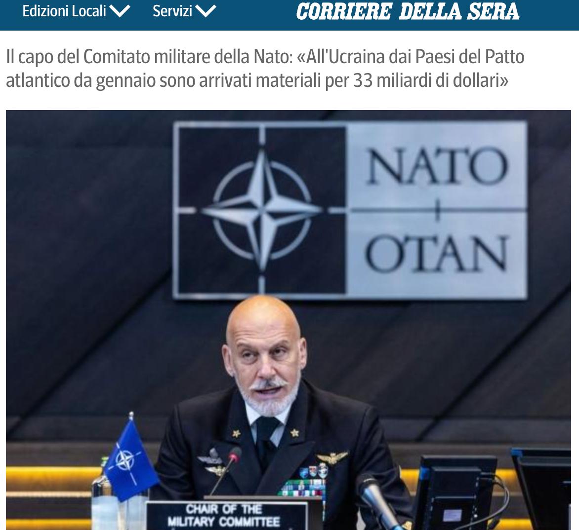 12:53 В этом году военная помощь Украине не увеличится и составит около 50 миллиардов долларов. Такие расчеты привел глава военного комитета НАТО Джузеппе Каво Драгоне.