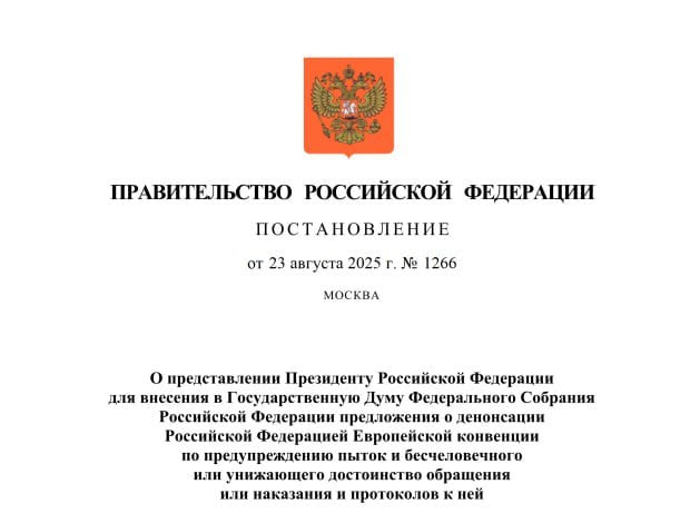 "Одобрить и представить президенту Российской Федерации для внесения в Государственную Думу Федерального Собрания Российской Федерации предложение о денонсации Российской Федерацией Европейской конвенции по предупреждению пыток и бесчеловечного или унижающего достоинство обращения или наказания от 26 ноября 1987 года, и протоколов к ней от 4 ноября 1993 года, подписанных от имени Российской Федерации в г. Страсбурге 28 февраля 1996 года", - говорится в проекте постановления.