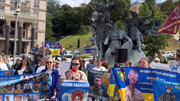 В Киеве состоялся митинг родственников пропавших без вести военных ВСУ. Скриншот видео