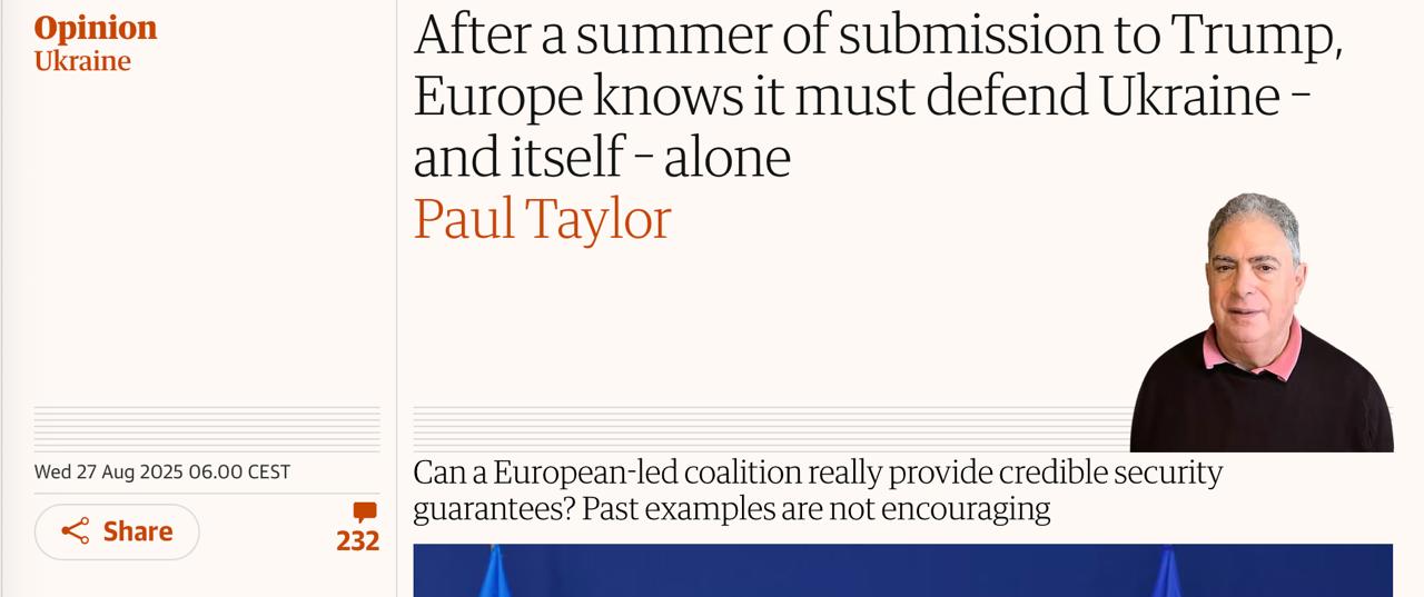 "Поскольку Путин не демонстрирует никаких признаков прекращения войны или участия в серьезных мирных переговорах, а Трамп не желает оказывать какое-либо реальное давление на Россию, способность европейцев обеспечить какое-либо прекращение огня вряд ли подвергнется испытанию. Это и к лучшему, поскольку мы все еще далеки от того, чтобы обладать реальным политическим и военным потенциалом, необходимым для сдерживания России без надежной поддержки США", - пишет Тейлор.
