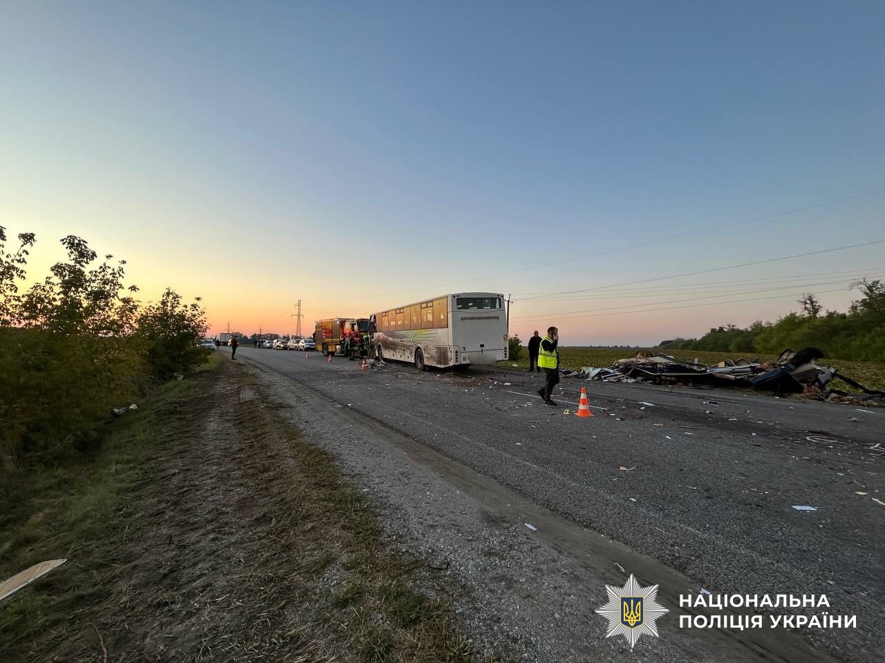 Смертельное ДТП с участием автобуса MAN и микроавтобуса Mercedes-Benz Sprinter произошло возле села Хмелевое Новоукраинского района Кировоградской области. Погибли шесть человек, среди них ребенок. Еще 6 – травмированы, их госпитализировали в больницу.