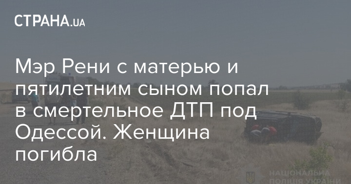 Мэр города Рени Одесской области Игорь Плехов попал в ДТП между селами Введенка и Светлодолинское Белгород-Днестровского района Одесской области. В автомобиле находились мэр, его мать и пятилетний сын. Женщина погибла на месте, Плехов и ребенок госпитализированы.