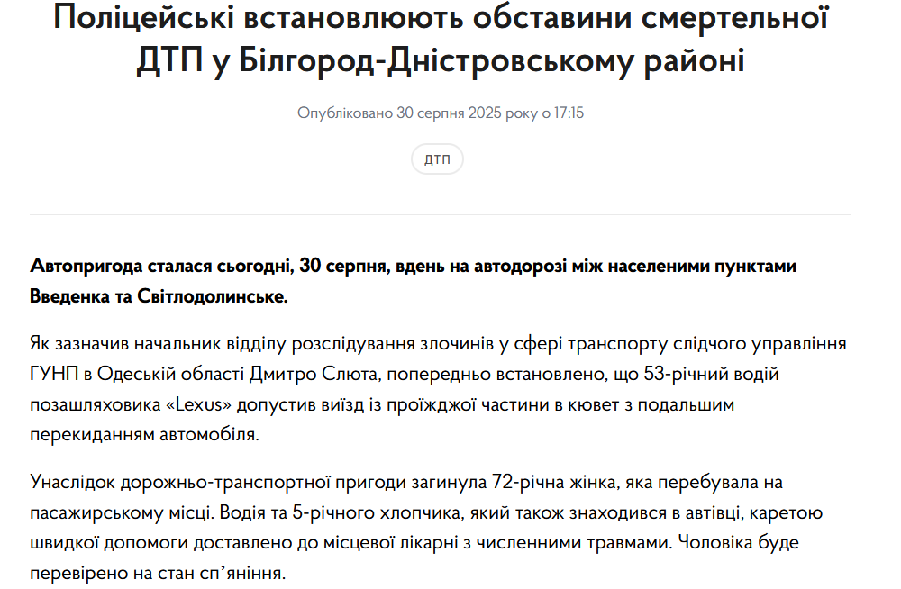 Об этом сообщают одесские издания. Пресс-служба Нацполиции опубликовала информацию о ДТП, не называя личностей пострадавших.