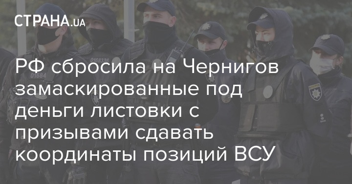 Россияне сбросили на Чернигов листовки с призывами за деньги делиться координатами позиций ВСУ, замаскированные под 100-гривневые купюры.