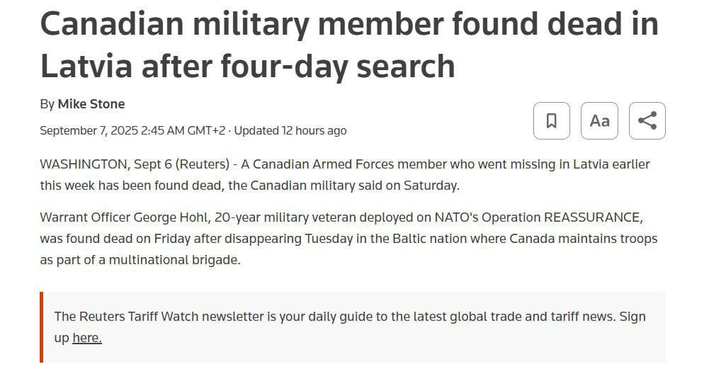В Латвии пропал канадский офицер. Его нашли мертвым