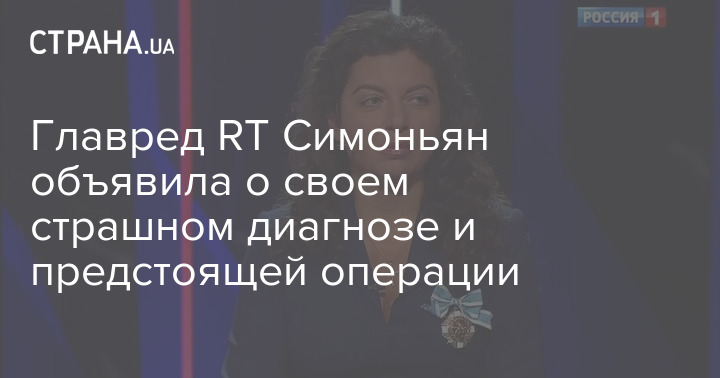 "За эту неделю у меня диагностировали страшную, тяжелую болезнь. У меня завтра операция как раз вот здесь, под этим орденом (при этом журналист указала на церковный орден княгини Ольги, которым на днях ее наградил патриарх Московский и всея Руси Кирилл - Ред.)... Я посчитала, что обязана прийти сегодня в эфир и сказать правду, потому что всегда лучше самим говорить правду, чем давать аудитории питаться слухами", - сказала Симоньян.