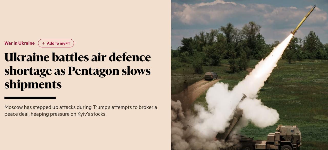 В последние месяцы, после появления директивы Пентагона об экономии средств, поставки из США были нерегулярными и меньшими, чем ожидалось. Ракеты, закупаемые напрямую у производителей в рамках Инициативы содействия безопасности Украины (USAI), производятся партиями, что приводит к возникновению перерывов между поставками. Поставки ПВО от Европы по новой программе замещения американским оружием "начались только частично".