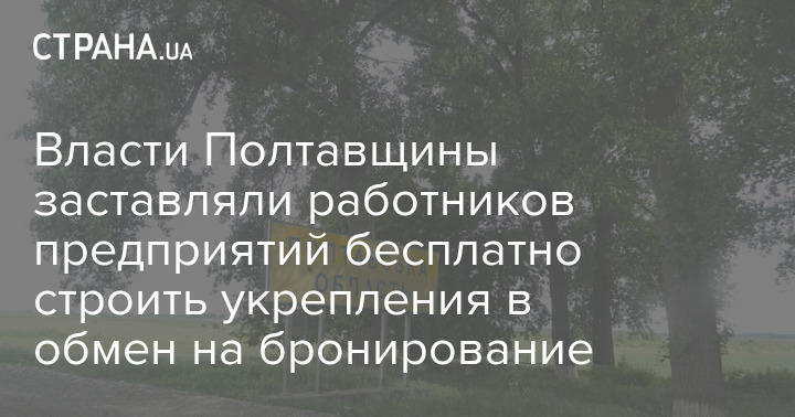 В Полтавской области власти вынуждали предприятия отправлять работников бесплатно работать на строительстве фортификаций в обмен на бронирование от мобилизации.