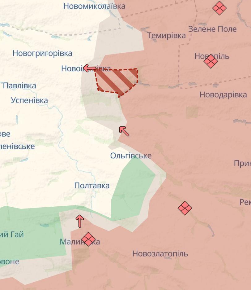 На востоке Запорожской области россияне продвинулись в Новоивановке, сообщает Deep State. Это к югу от участка в Днепропетровской области, где идет крупное наступление РФ (о нем мы писали вчера).