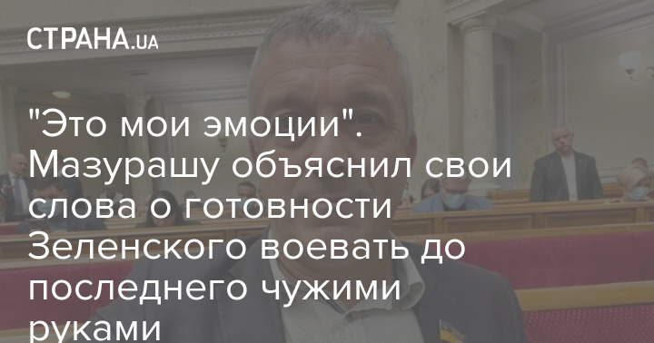 "Это мои эмоции". Мазурашу объяснил свои слова о готовности Зеленского воевать до последнего чужими руками