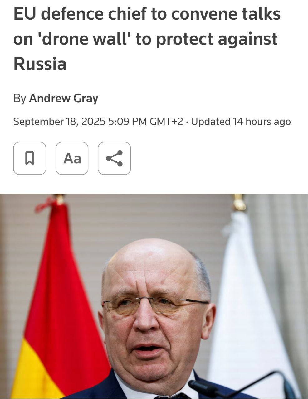 После вторжения российских дронов в воздушное пространство Польши Европейский Союз намерен созвать переговоры о создании стены дронов для защиты восточных границ блока.