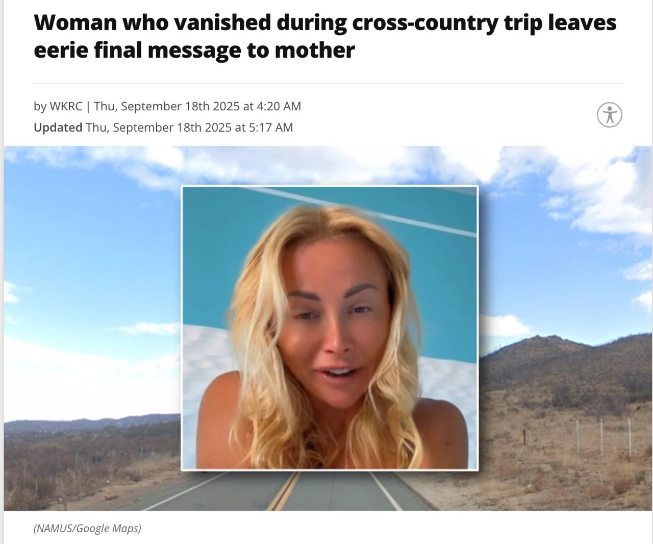 А за несколько дней до исчезновения женщина опубликовала в соцсетях видео, на котором танцевала в бикини с подписью: "Я хочу, чтобы все запомнили меня именно такой", а также видео, на котором собирает вещи - противогаз, солнечные батареи и рацию - с подписью: "Я знаю, что мой час близок".