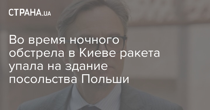 Во время ночного обстрела в Киеве ракета упала на здание посольства Польши