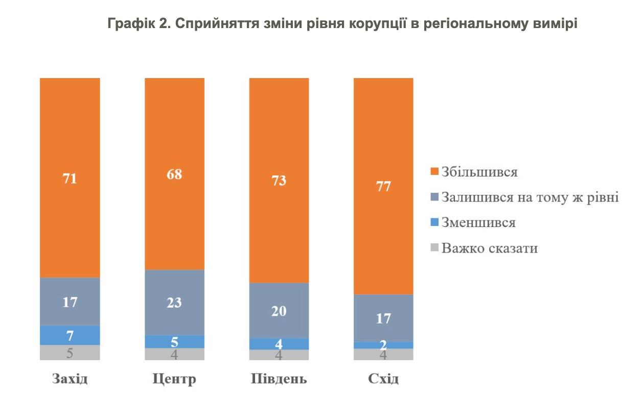 Больше всего коррупция выросла для жителей восточных областей Украины (77%).