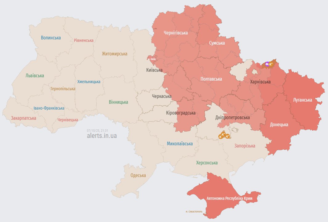 21.32 Тревога в Киеве и ряде областей из-за БПЛА.