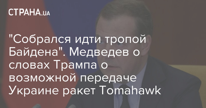 Заместитель председателя Совета безопасности РФ Дмитрий Медведев заявил, что Дональд Трамп "собрался идти дорогой Байдена", комментируя заявление президента США о возможности предоставить Украине ракеты Tomahawk.