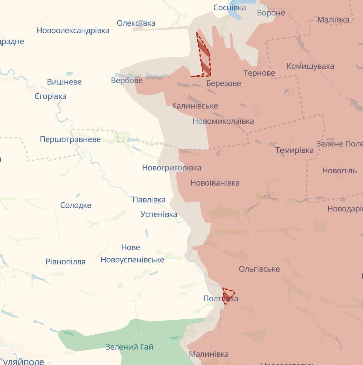 Также у них продвижения в Днепропетровской области (Березовое) и Запорожской (Полтавка).