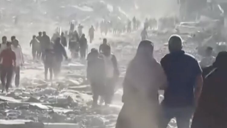 На видеоролике можно заметить огромную колонну из людей, идущих на север, к городу Газа.