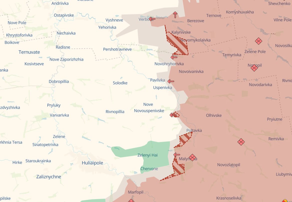 На востоке Запорожской области армия РФ продвинулась в районах Малиновки и Полтавки. А севернее - у Калиновского на юго-востоке Днепропетровской области, сообщает Deep State.