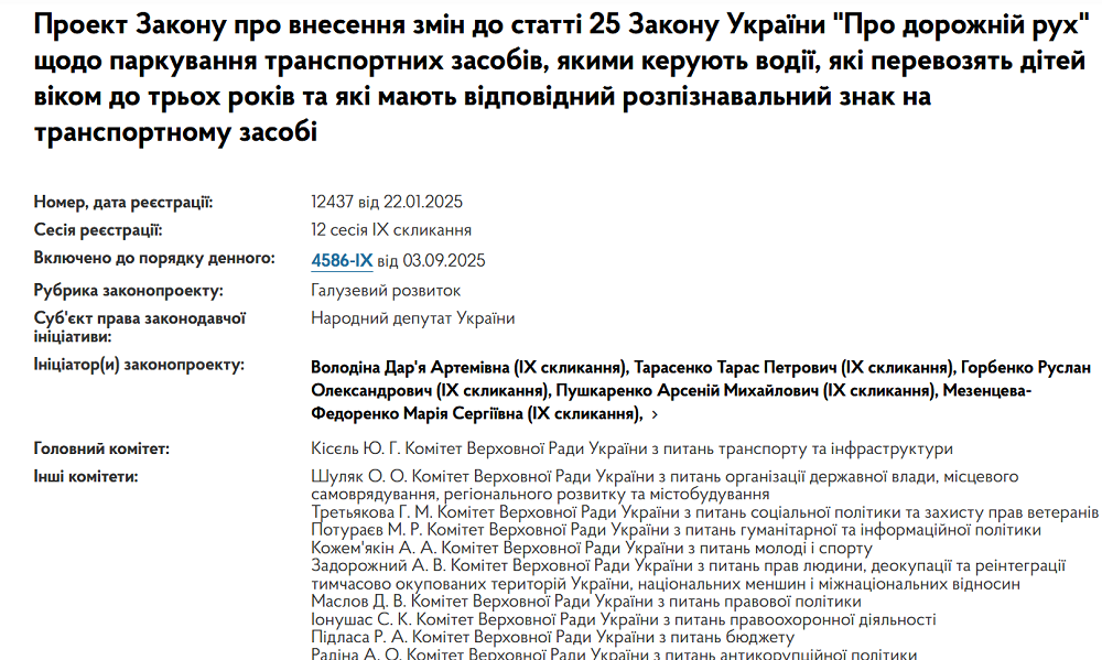 Целью законопроекта является повышение комфорта и безопасности родителей с маленькими детьми, а также содействие развитию системы парковки в Украине.