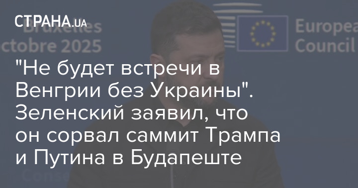 "Не будет встречи в Венгрии без Украины". Зеленский заявил, что он сорвал саммит Трампа и Путина в Будапеште