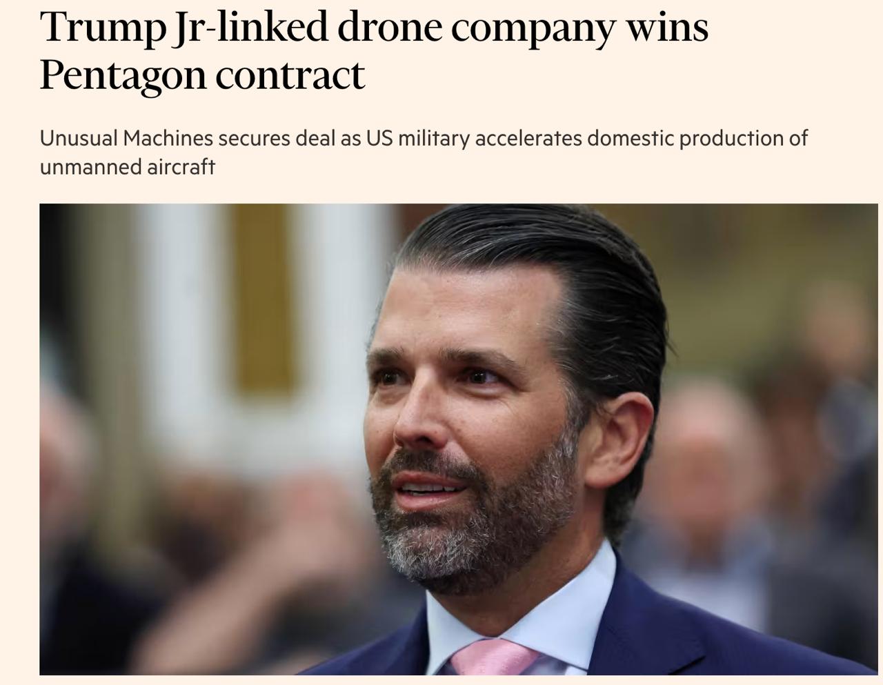 Снимок заголовка (2) на ft.com - предприятие Трампа-младшего заключило контракт по производству военных беспилотников